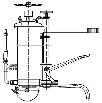 JRB-3型脚踏润滑泵主要由贮油器,柱塞泵、打气筒操纵装置四大部分组成。