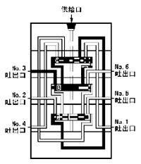 | 7、流入的润滑剂推动活塞A 向右运动、右腔的润滑剂压向NO.6吐出口,经外部配管送向润滑点。当活塞A移动到至右极限时返回到初始1状态,继续重复上述动作。 |