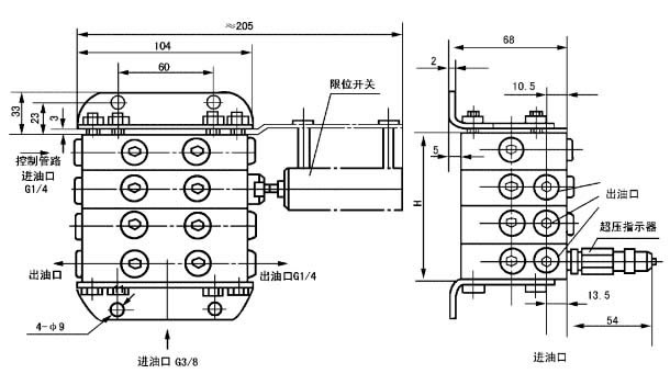 4、JPQ2型、JPQ4型分配器根据需要可以安装超压指示器。