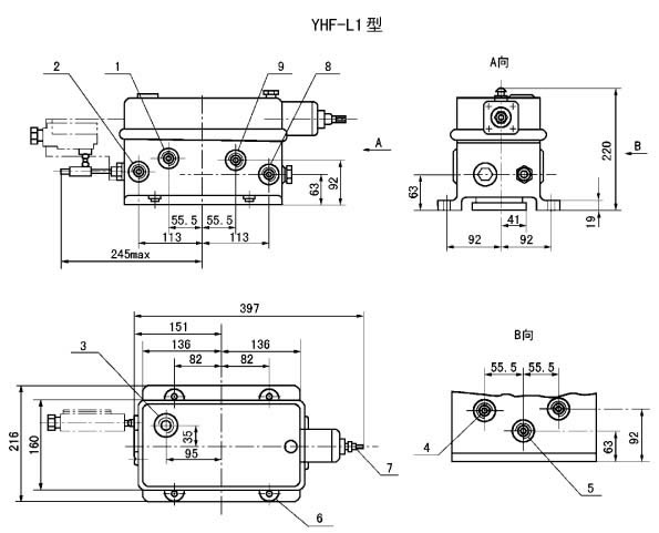 YHF-L1型阀与流量585mL/min的泵相配,安装于底板上。YHF-L2型阀与流量60和195mL/min的泵相配,安装于泵体上。