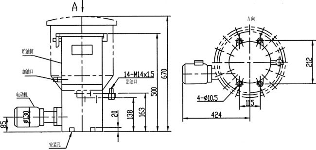 4、给油口数可在1~14范围内任意选择,根据设备需要不用的压油柱塞泵元件可以自行拆下,螺孔用M20×1.5螺塞封堵即可。