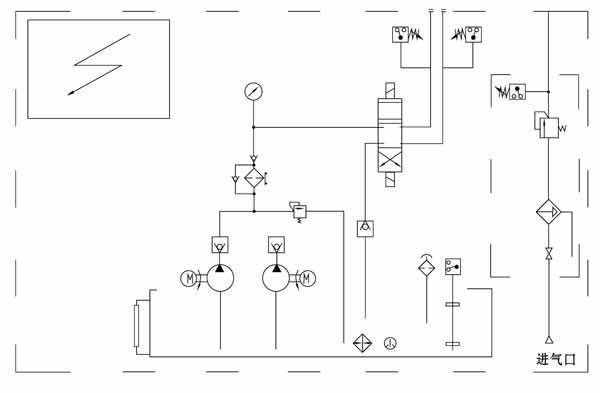 3、 油箱油位低时应及时从空气滤清器的过滤网处加入同牌号的润滑油,油位到达低油位时电气连锁油泵不能启动,严禁人工在无油或低位以下时启动油泵工作。